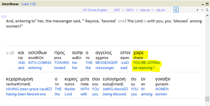 "Luka 1: 28 Thiên sứ vào chỗ người nữ ở, nói rằng: Hỡi người được ơn (κεχαριτωμενη kecharitOmenE (HAVING been graced), mừng cho ngươi; Chúa ở cùng ngươi. "